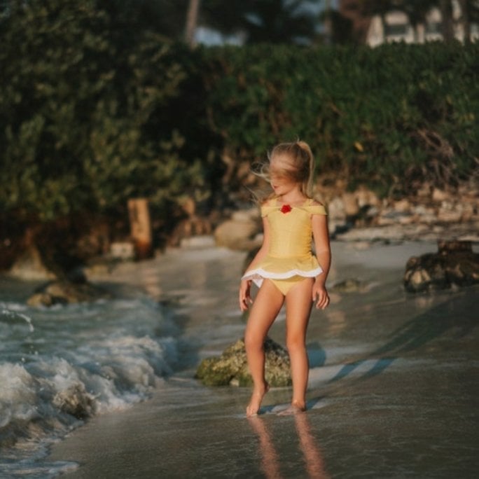 - This Princess Swimsuit Whether playing at the beach, swimming in the pool, attending themed parties or water sports activities, you can make sure your kids are comfortable and protected from the sun in this stylish swimsuit